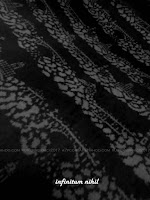 Infinitum nihil, nada mais que uma série construída com o propósito de desviar a atenção, um caminho de luz enegrecido, porventura apocalíptico, perturbadoramente sem luz, feito com os mesmos nadas, como a fotografia de um cão que passa, de uma jarra, de louça por lavar na banca, ou de umas peúgas de ontem prostradas no chão.